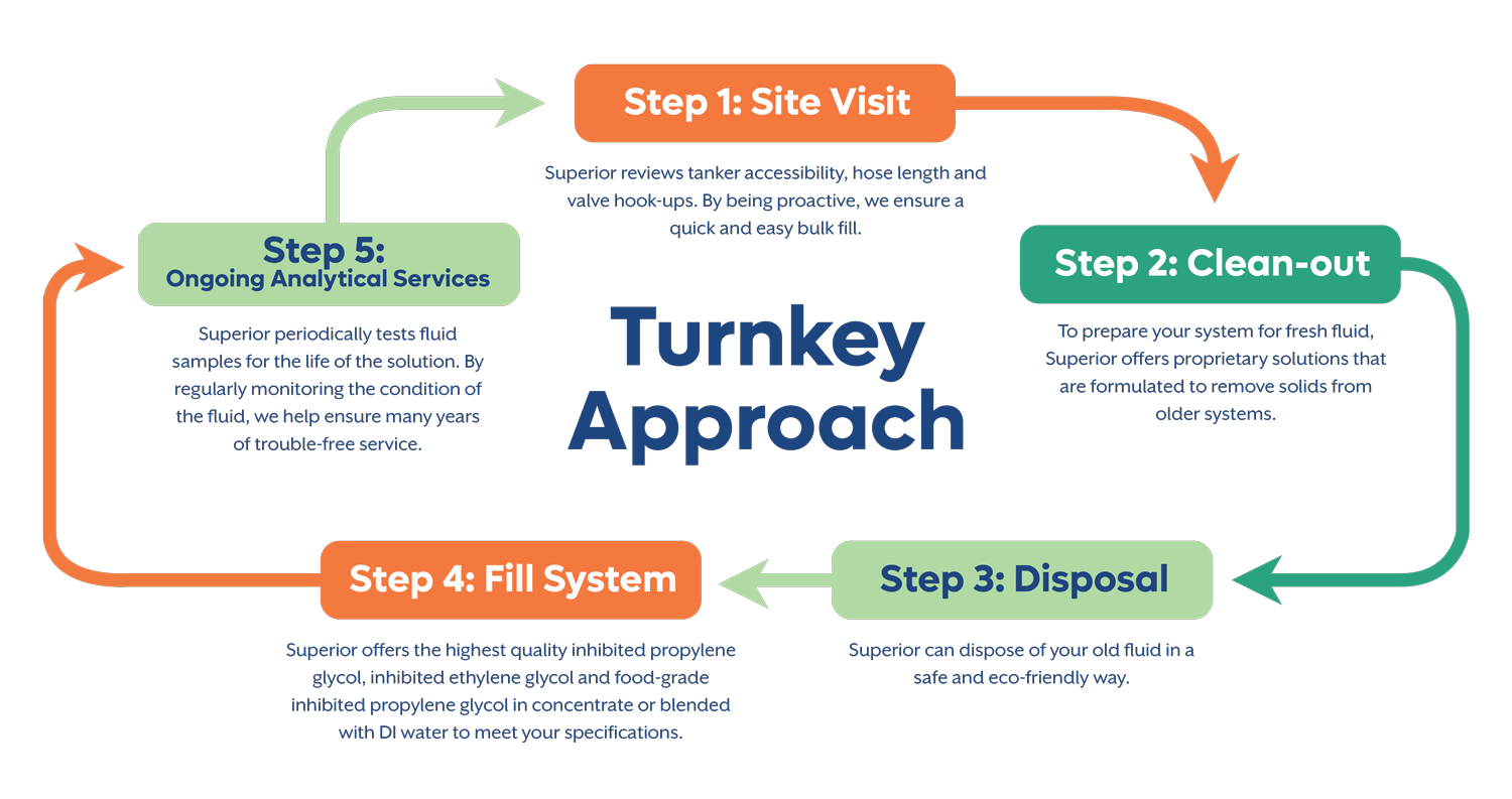Superior places your needs and timeline at the top of our priorities to ensure you have the right heat transfer fluids when you need them. Whether your needs are high-quality industrial grade ethylene or propylene glycol, or USP or food grade glycol with or without corrosion inhibitors, we are ready to service you at a moment's notice.